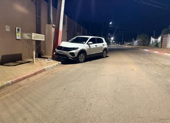 VÍDEO: Filho de vice-prefeita, menor de idade, bate carro em poste no Centro de Poconé