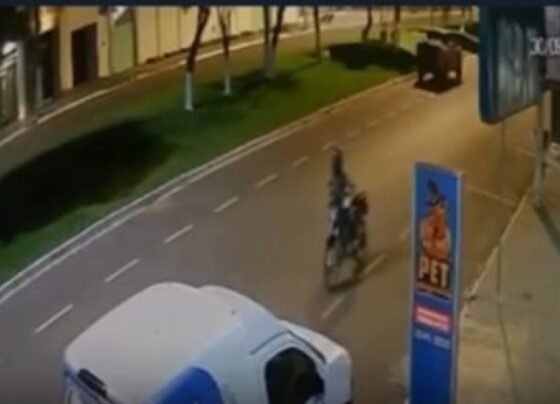 VÍDEO: Câmera de segurança mostra motocicleta sendo furtado no centro no interior de MT
