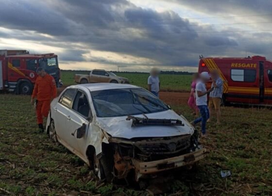 Condutor é ejetado após capotar veículo em zona rural de Lucas do Rio Verde