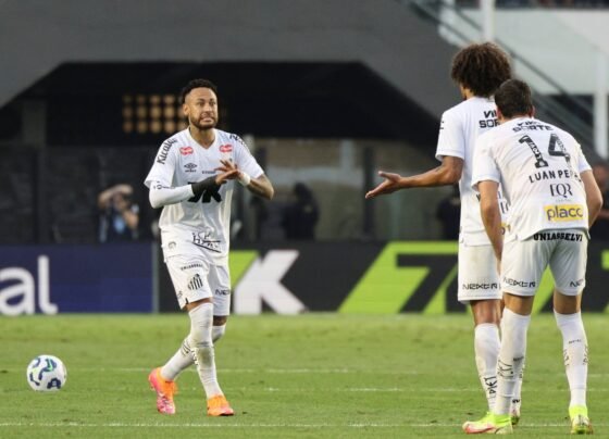 Neymar cobra falta com paradinha e quase marca para o Santos