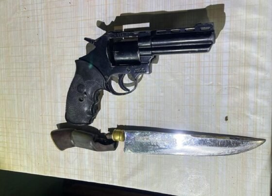 PMMT Uma arma de fogo, uma faca e uma motocicleta foram apreendidos. PMMT Uma arma de fogo, uma faca e…