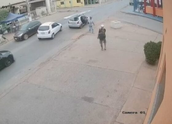 Reprodução Câmeras de segurança registraram o momento em que um homem desce de uma Celta prata e pega uma carteira…
