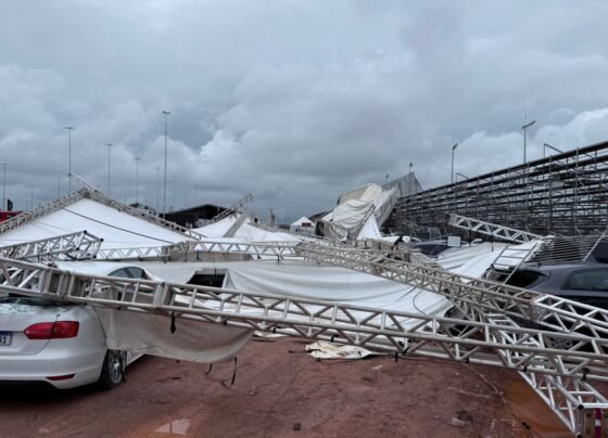Os veículos atingidos pela queda da cobertura de uma das arquibancadas no Parque Novo Mato Grosso continuaram retidos nesta sexta-feira…