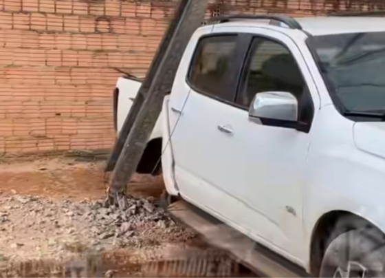 Acidente entre carro e caminhonete derruba poste entre os bairros Santa Clara e Rota do Sol, em Sorriso