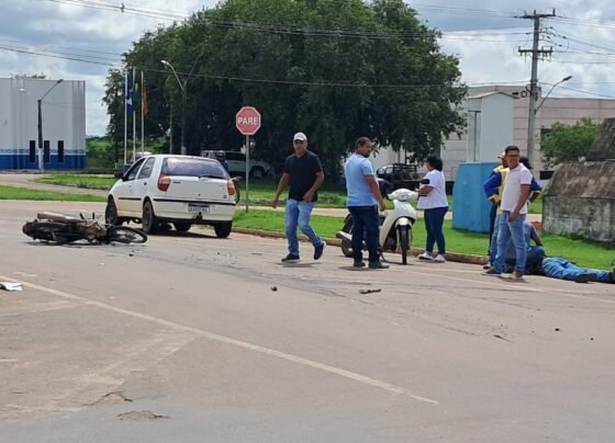 Acidente em frente ao Batalhão da PM deixa motociclista ferido em Alta Floresta