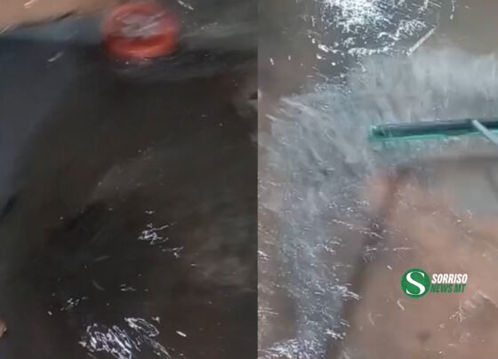 Esgoto volta a jorrar em frente a comércio no bairro Mário Raiter e revolta moradores em Sorriso