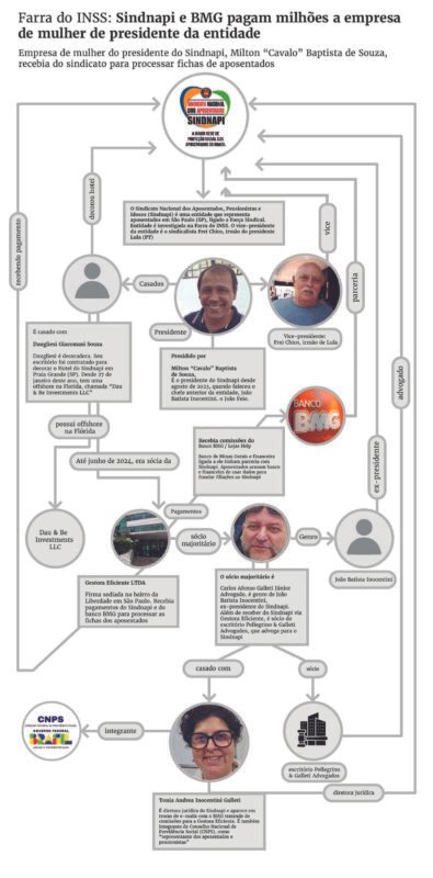 Diagrama mostra as relações entre Sindnapi, BMG e firma Gestora EficienteDiagrama mostra as relações entre Sindnapi, BMG e firma Gestora Eficiente