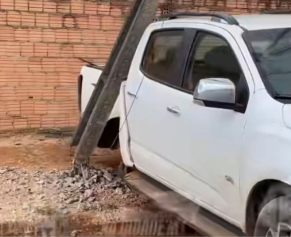 Com o impacto, a caminhonete sofreu danos significativos, chegando a perder uma das rodas, enquanto o poste ficou completamente entortado. Marcas da colisão ficaram espalhadas pela via, chamando a atenção de moradores e motoristas que passavam pelo local. Equipes do Corpo de Bombeiros foram acionadas para atender a ocorrência.