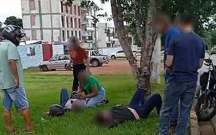 Durante a manobra, os veículos acabaram colidindo lateralmente, fazendo com que os ocupantes caíssem ao solo.