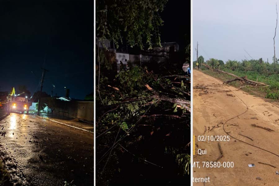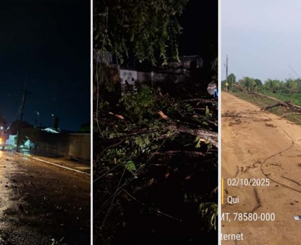 Na noite de quarta-feira (1º), um temporal já havia atingido Alta Floresta, provocando a queda de árvores em diferentes pontos da cidade. O vento forte e a chuva causaram rompimento de cabos, deixando bairros sem energia elétrica e sem acesso à internet.