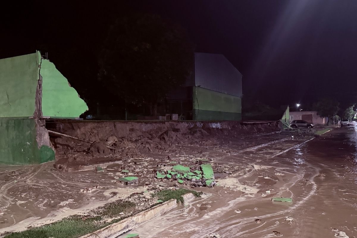 O muro da Escola Estadual Silvio Ferreira não resistiu ao volume de água e à pressão exercida pela enxurrada e desabou, ficando completamente destruído. Felizmente, não havia estudantes ou funcionários no local no momento do incidente e nem veículos.