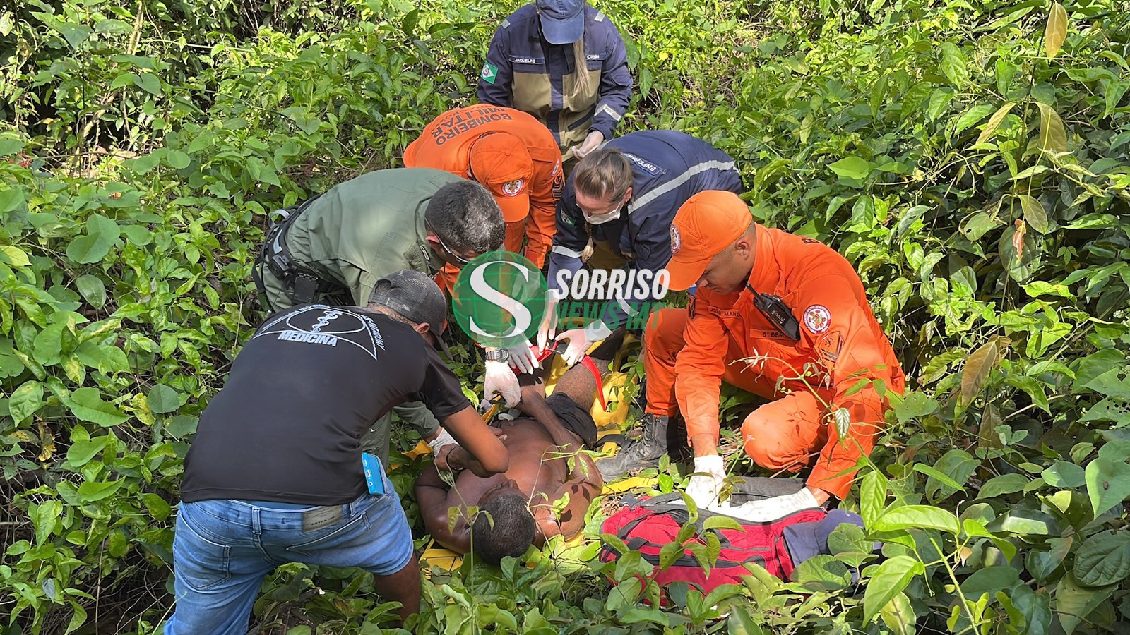 Ele foi colocado em uma maca e encaminhado ao Hospital Regional de Sorriso, onde recebeu atendimento médico.