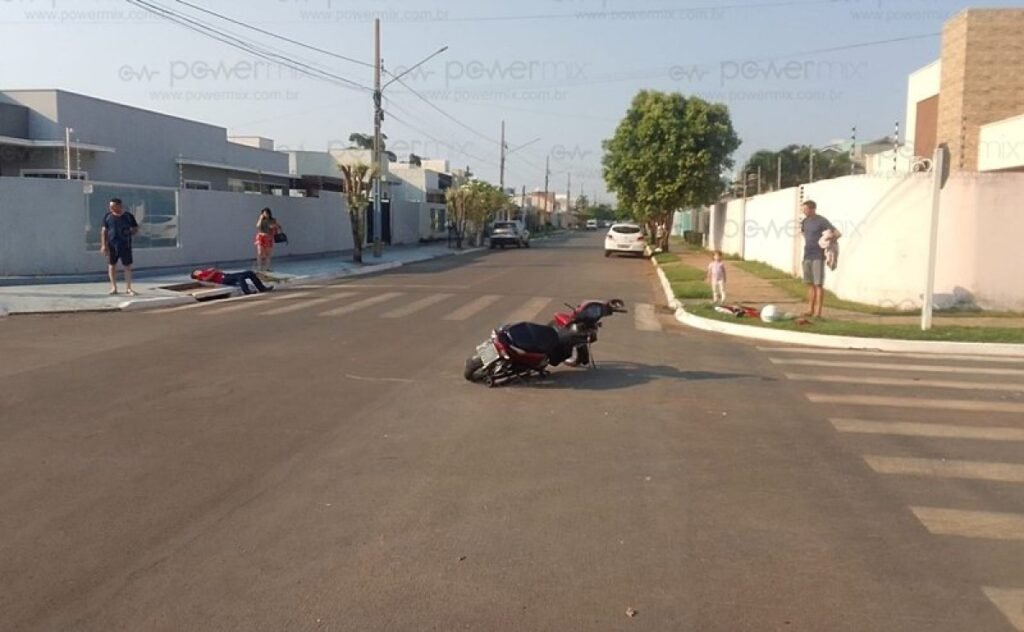 Colisão entre carro e moto deixa jovem de 20 anos ferido no bairro Flamboyants em Nova Mutum/MT