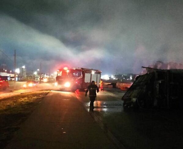 A equipe foi acionada pelo Centro Integrado de Operações de Segurança Pública (CIOSP) por volta das 23h38. No local, os bombeiros encontraram uma carreta que havia saído da pista depois que o pneu do cavalo mecânico estourou, ocasionando o tombamento do conjunto veicular e, em seguida, o incêndio.