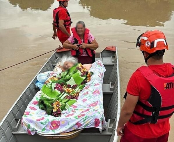 No local, os bombeiros constataram que a idosa, que é acamada, e sua filha não conseguiam deixar a residência com segurança devido ao elevado nível da água. Para realizar o resgate, foi necessário o uso de uma embarcação, já que o acesso por vias terrestres estava impossibilitado pelas condições do terreno. Com o auxílio do barco, as duas foram retiradas da residência sem ferimentos e encaminhadas para um local seguro.