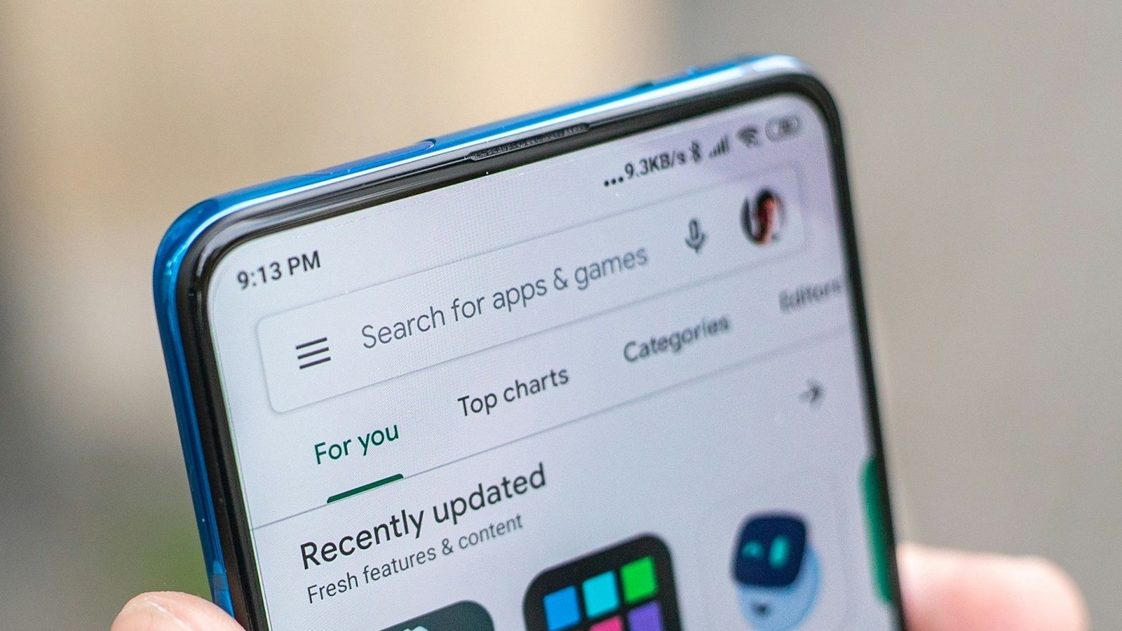 5. Feito isso, abra o app da Play Store e toque no campo de busca para pesquisar normalmente.