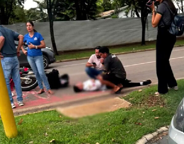 Segundo relato do condutor da Honda CG, ele trafegava pela avenida no sentido Setor E ao Setor G e havia parado sobre a faixa de pedestres, momento em que foi atingido na parte traseira pela outra motocicleta, que seguia no mesmo sentido. Com o impacto, o condutor e a passageira da CG caíram ao solo.