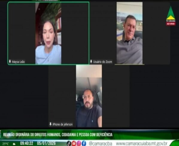 A Comissão de Direitos Humanos, Cidadania e Pessoa com Deficiência da Câmara Municipal de Cuiabá realizou, na manhã desta segunda-feira (5), reunião ordinária de forma remota, com a presença da presidente da comissão, vereadora Maysa Leão (Republicanos), e dos membros vereadores Demilson Nogueira (PP) e Jeferson Siqueira (PSD).