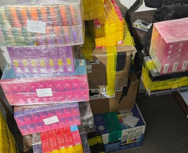 Os policiais se deslocaram até o endereço indicado da loja e encontraram mais 5.715 quantidades de cigarros eletrônicos, 2.637 essências dos produtos que são proibidos de venda no Brasil, além de 48 carteiras de cigarros com origem estrangeira, além de resistências, planilhas com anotações e notebooks.