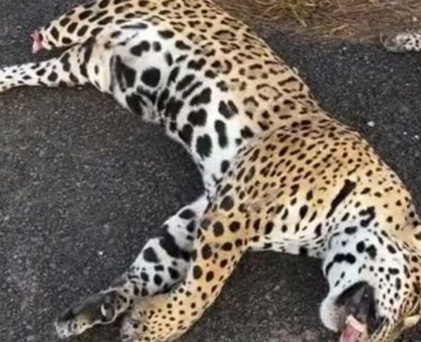 Duas onças foram atropeladas e mortas em rodovia de MT. – Foto: reprodução/ @manualdosoja
