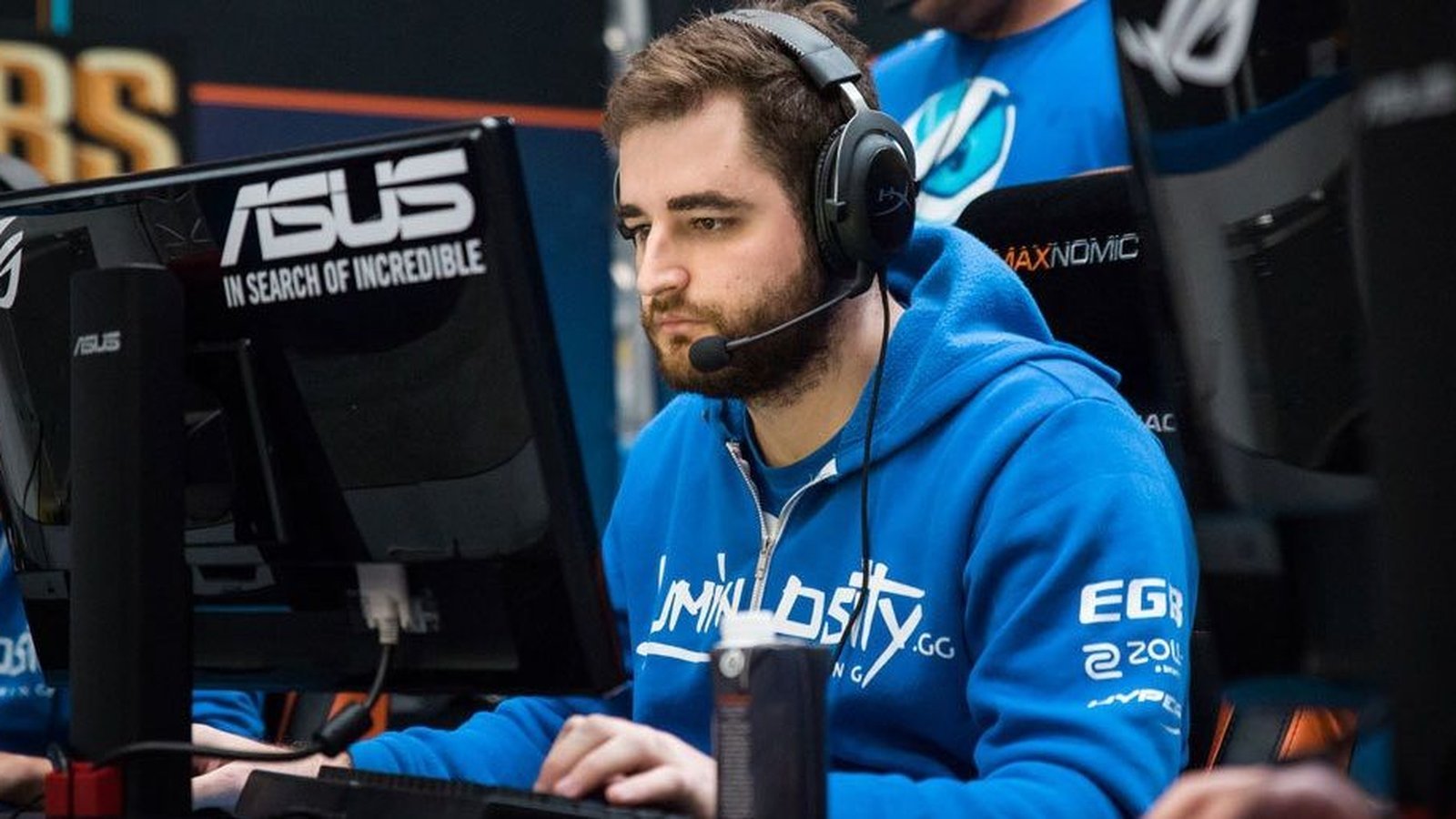 fallen-jogador-brasileiro-de-cs2-em-torneio-esl-usando-fone-de-ouvido-e-camisa-da-equipe-com-logotipos-de-patrocinadores