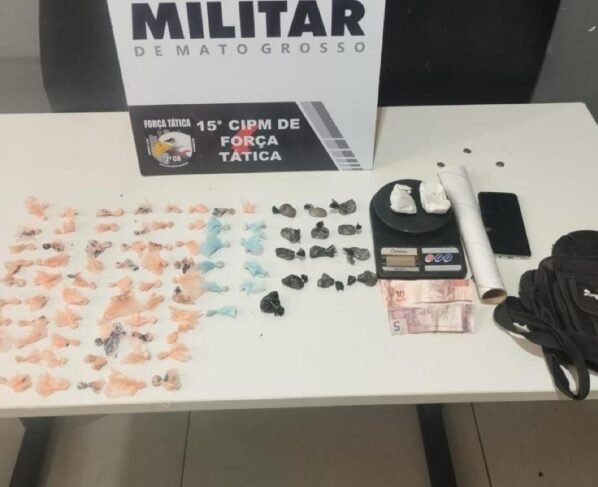 Policiais militares da Força Tática do 2º Comando Regional apreenderam, nesta sexta-feira (3.10), 104 porções de entorpecentes, entre maconha e pasta base de cocaína, e prenderam dois homens em flagrante, suspeitos por tráfico ilícito de drogas, em duas ações distintas, em Várzea Grande.