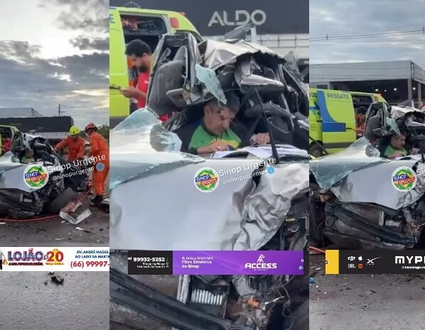Um homem, ainda não identificado, viveu o que pode ser considerado um verdadeiro milagre na manhã desta quinta-feira (5), na BR-163, em Sinop. Ele estava em um Hyundai HB20 que foi completamente destruído após uma colisão com um caminhão carregado e uma carreta, por volta das 6h14, no km 827 da rodovia.