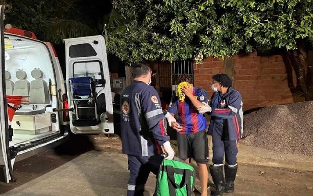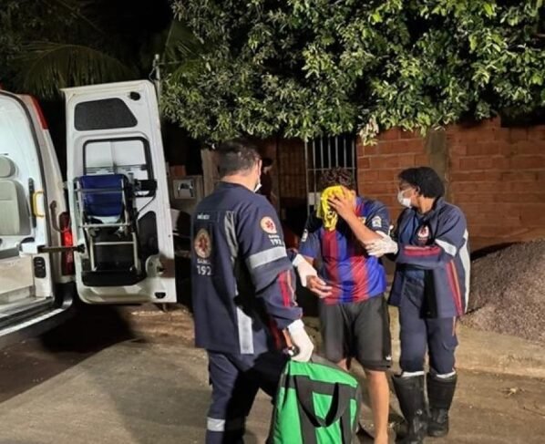 A vítima foi atingida na região da face. Uma equipe do Corpo de Bombeiros e Serviço de Atendimento Móvel de Urgência (Samu) foi acionada e realizou os atendimentos médicos. Ele estava com um corte de aproximadamente 4cm.