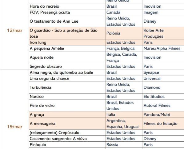 Confira abaixo alguns destaques agendados para as próximas semanas. Para demais datas e títulos, consulte as tabelas ao fim da página e o Calendário de Estreias Filme B.