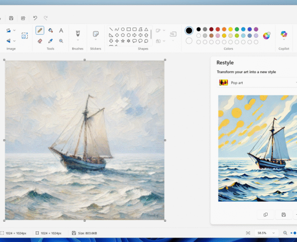 A Microsoft iniciou a distribuição do Restyle, novo recurso de IA do Paint para reestilizar imagens.