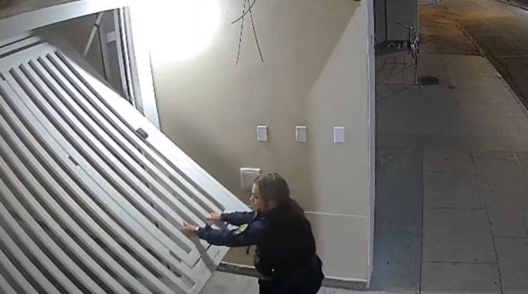 Imagens das câmeras de segurança mostram o momento em que a vítima grita por socorro e os policiais ordenam que o suspeito abra o portão e largue a arma. Mesmo após repetidas advertências, Fábio não obedeceu às ordens e tentou avançar contra a equipe.