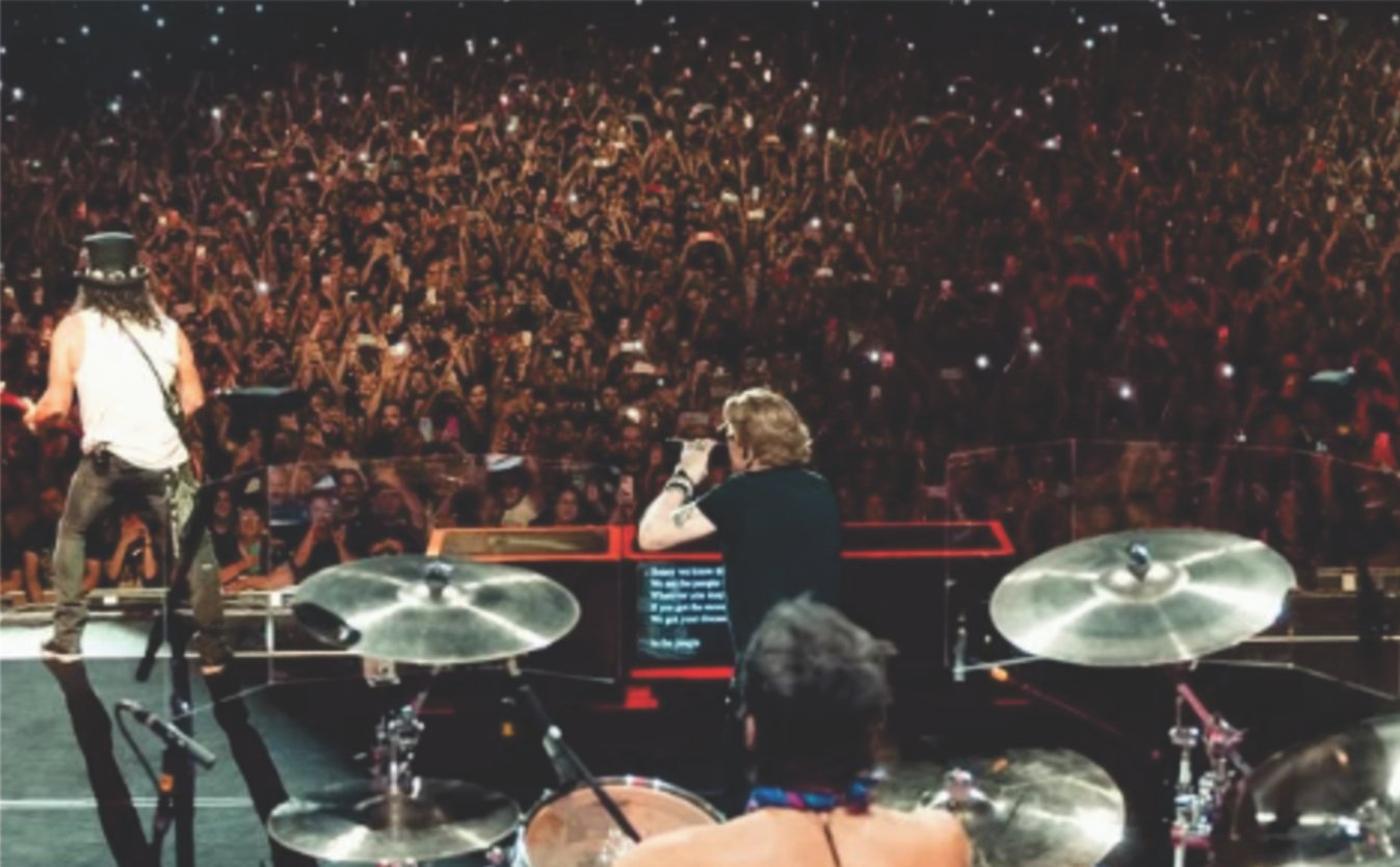 A noite começou com a energia irreverente dos Raimundos, que aqueceram o público antes da entrada triunfal de Axl Rose e Slash, às 21h45. O setlist trouxe uma sequência de clássicos que marcaram gerações, como Welcome to the Jungle, Sweet Child O’ Mine, Patience e November Rain, executadas com perfeição e acompanhadas em coro por milhares de fãs.