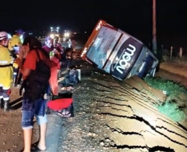 Um ônibus com 26 passageiros tombou na madrugada desta quarta-feira, por volta de 1h30, no km 678 da BR-163, em Lucas do Rio Verde. O veículo seguia no sentido Sinop–Cuiabá e transportava pacientes encaminhados pela Secretaria Municipal de Saúde de Sinop para tratamento médico na capital.