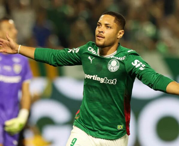 Vitor Roque, aos 8′ do 1°T (Palmeiras)