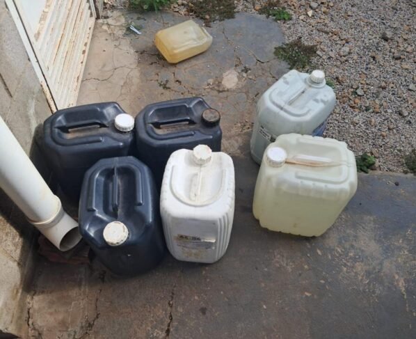 Em uma residência próxima, as equipes encontraram recipientes contendo substâncias compatíveis com combustíveis, reforçando a suspeita de prática irregular.