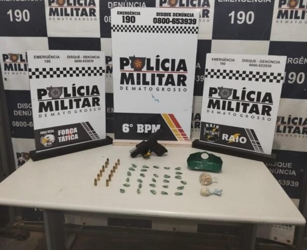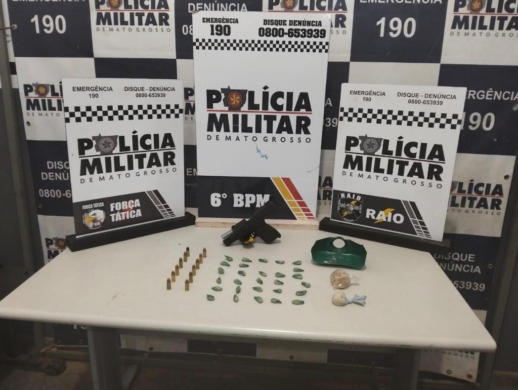 Durante a abordagem, o suspeito relatou à PM que possuía uma arma de fogo e uma quantidade de drogas na casa. Em buscas pelo material, os policiais encontraram uma pistola calibre .9mm e um carregador contendo 12 munições do mesmo calibre.