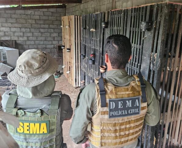 A ação foi desencadeada pela Delegacia de Meio Ambiente (Dema), durante trabalhos de fiscalização em conjunto com a Sema, em que apuraram uma denúncia sobre a existência de uma rinha de galos em uma propriedade, na região da Estrada do Engordador (VG).