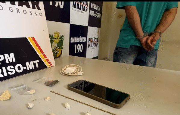 Durante patrulhamento no bairro Rota do Sol, em Sorriso, a Polícia Militar prendeu um homem suspeito de tráfico de drogas e com ligação a uma facção criminosa. A ocorrência foi detalhada pelo sargento Almeida, que participou da ação.