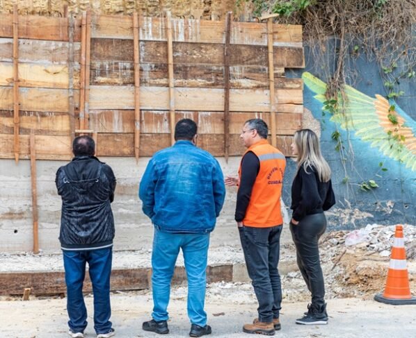 Acompanhado de Ivan Garcia e Ariane Kehl, engenheiros da Secretaria de Obras, o secretário adjunto informou que a previsão para a conclusão da reconstrução do muro é de 30 dias, considerando o grau de complexidade da obra. Ele garantiu, ainda, que a nova estrutura segue padrões técnicos rigorosos de engenharia. “Esse muro vai conter toda essa ribanceira. A estrutura que está sendo construída, com um projeto técnico bem executado e os materiais corretos, não vai ceder novamente. A população pode ter tranquilidade”, assegurou Mateus.