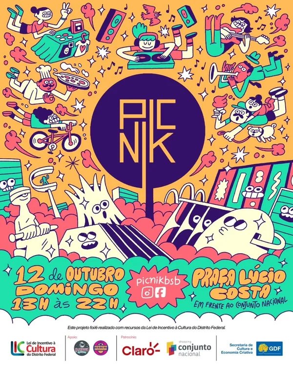 Entre os destaques, está a edição especial do PicniK, que transforma a Praça Lúcio Costa em um espaço multicultural, com música, economia criativa e convivência entre gerações. O festival, já querido pelo público brasiliense, prepara uma programação gratuita e ao ar livre, perfeita para famílias.