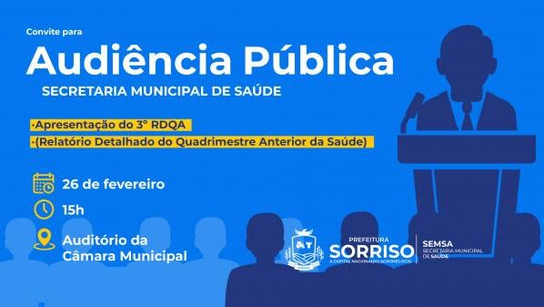 Seguindo as diretrizes de controle social do Sistema Único de Saúde (SUS), a Secretaria Municipal de Saúde promoverá, na próxima quinta-feira (26), uma Audiência Pública para a apresentação do 3º Relatório Detalhado do Quadrimestre Anterior, de 2025. O encontro será realizado às 15h, no auditório da Câmara Municipal.