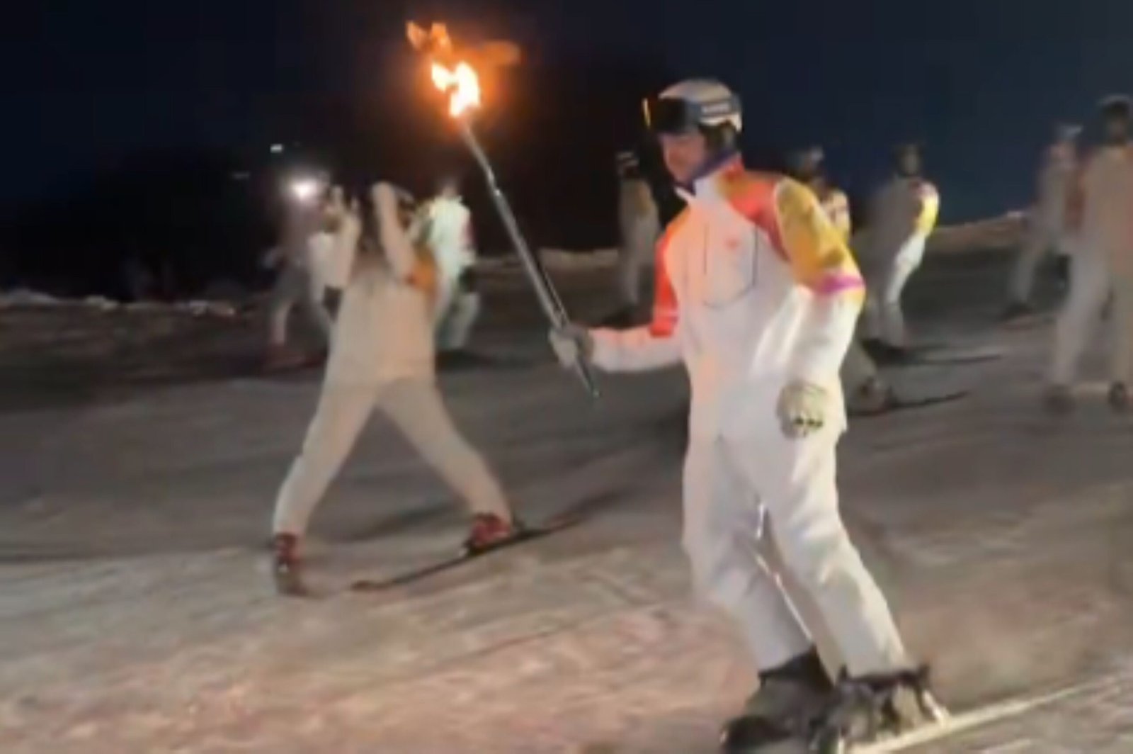 O recebimento da tocha na cidade foi feito de forma representativa aos Jogos de Inverno possível: de esqui. O objeto simbólico, responsável por acender a pira olímpica na abertura do evento, fez uma breve descida em uma estação.
