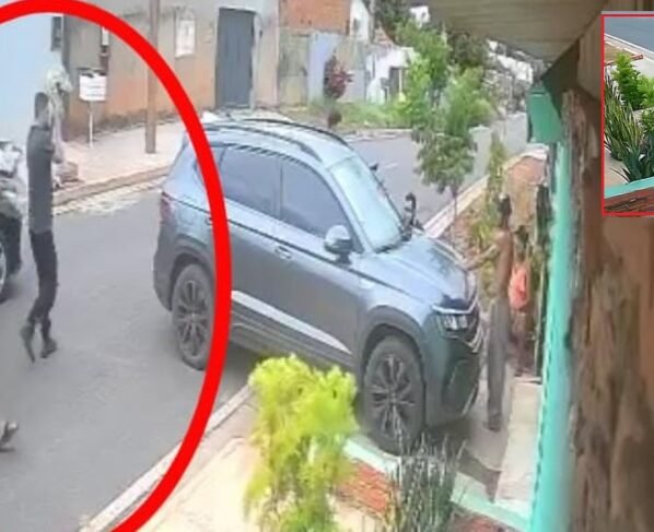 Conforme as imagens, uma família estava em frente à residência quando foi surpreendida pelos suspeitos. Dois deles usavam capacete, enquanto o terceiro portava uma arma de fogo. Os criminosos ordenaram que as vítimas colocassem as mãos na cabeça. No local havia também um idoso sentado ao lado de uma criança, o que aumentou a tensão durante a ação.