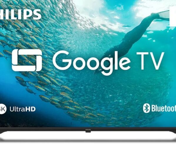 A plataforma Google TV facilita o acesso a serviços como YouTube, Netflix e Prime Video, além de oferecer Chromecast integrado e comando de voz com Google Assistente.