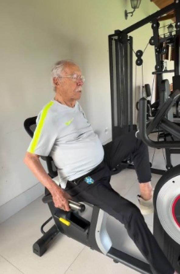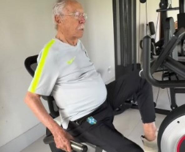 Nas imagens, Sarney aparece acompanhado por uma fisioterapeuta durante a atividade e demonstra disposição ao realizar os movimentos. Ao comentar a rotina, ele deixou uma mensagem de incentivo: “Sempre é tempo de se movimentar”.