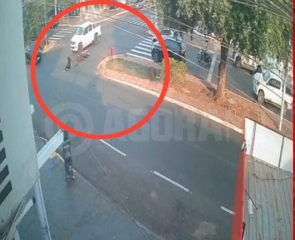 O acidente foi registrado por câmeras de segurança, que mostram o momento em que a motociclista avança no cruzamento assim que o sinal abre. No mesmo instante, o motorista da caminhonete, que desrespeitou a sinalização de trânsito, atravessa o cruzamento em alta velocidade e atinge violentamente a moto. Com o impacto, a vítima foi arremessada por vários metros.