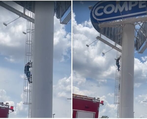 As equipes dos bombeiros relatam que o homem apresenta comportamento instável, alternando momentos de calma e agitação, subindo e descendo da estrutura metálica da caixa d’água. A área segue isolada pelas forças de segurança, enquanto os profissionais tentam convencê-lo a descer com segurança.